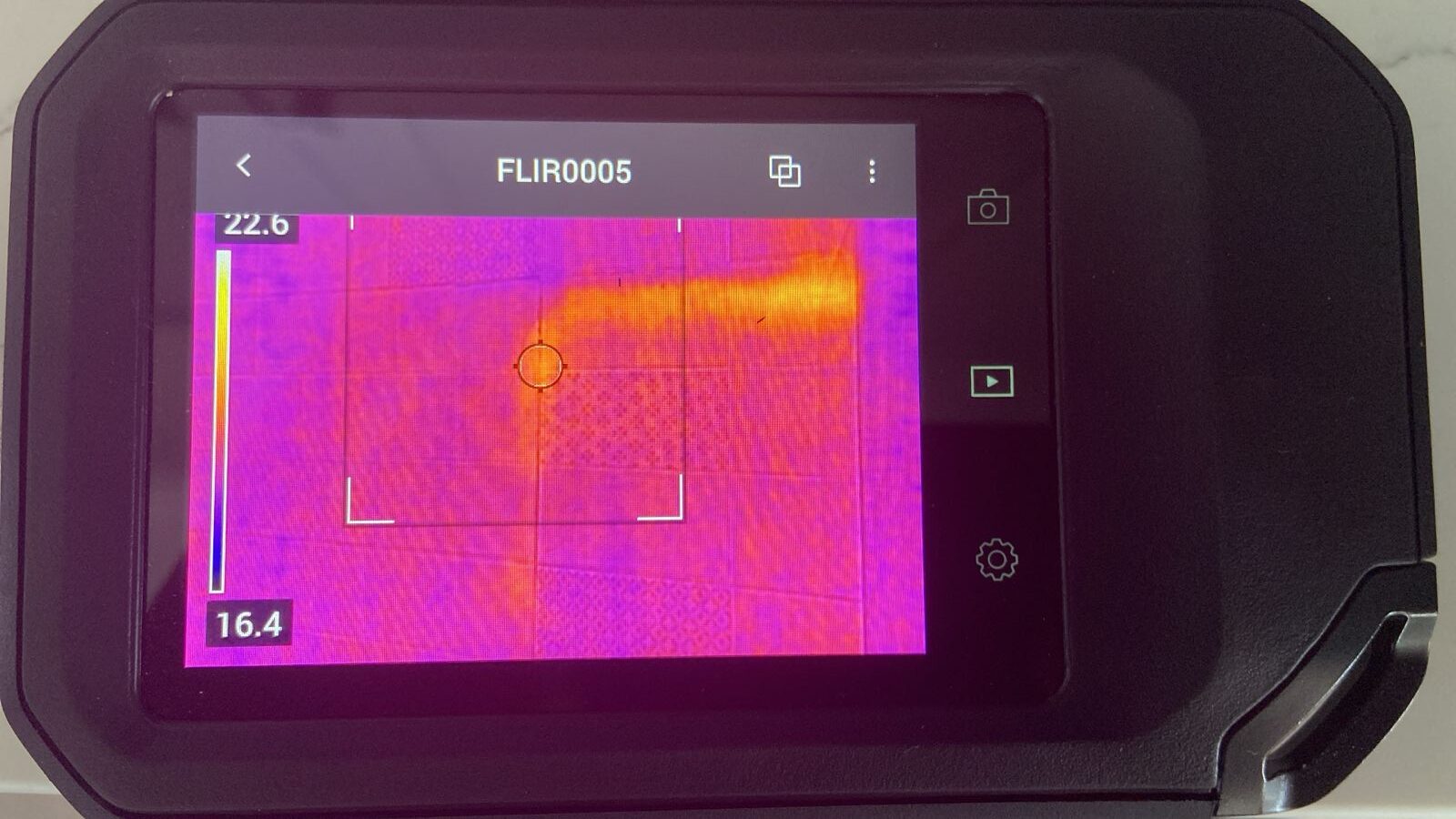 Thermal imaging to detect moisture and temperature changes indicating leaks or insulation issues behind solid surfaces.